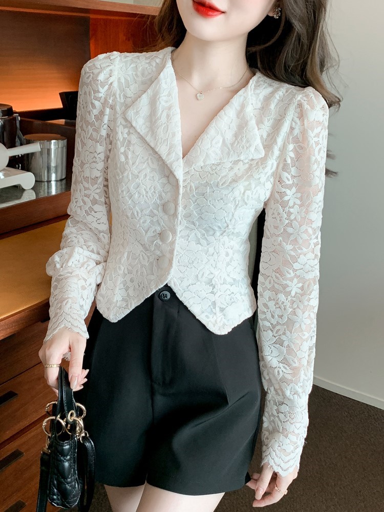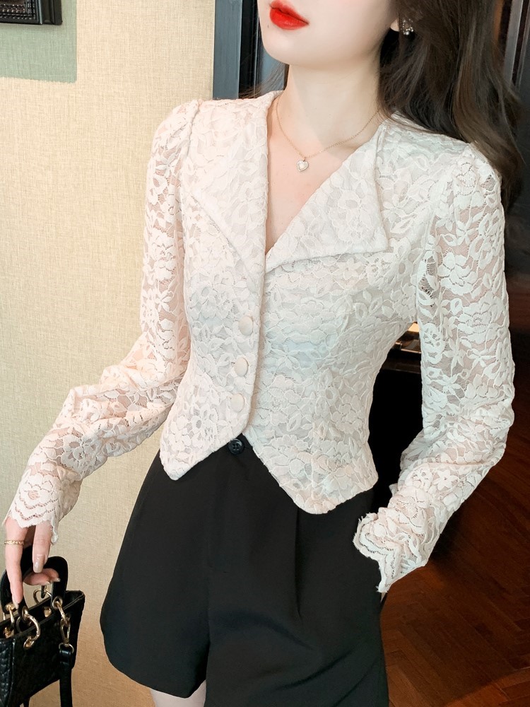 Fa-style upscale lace blouses women 2022 spring autumn new fashion sashimi shorts design senses Don't get a shirt