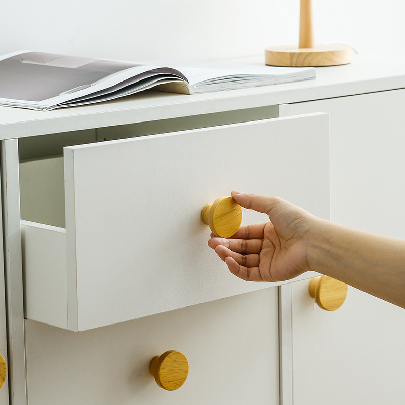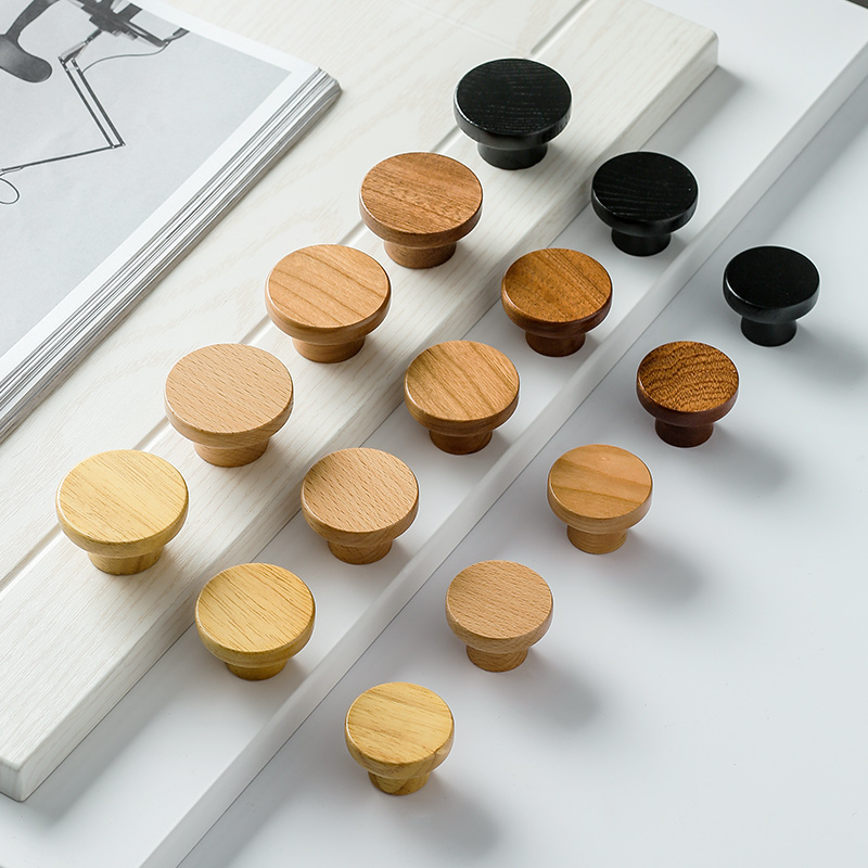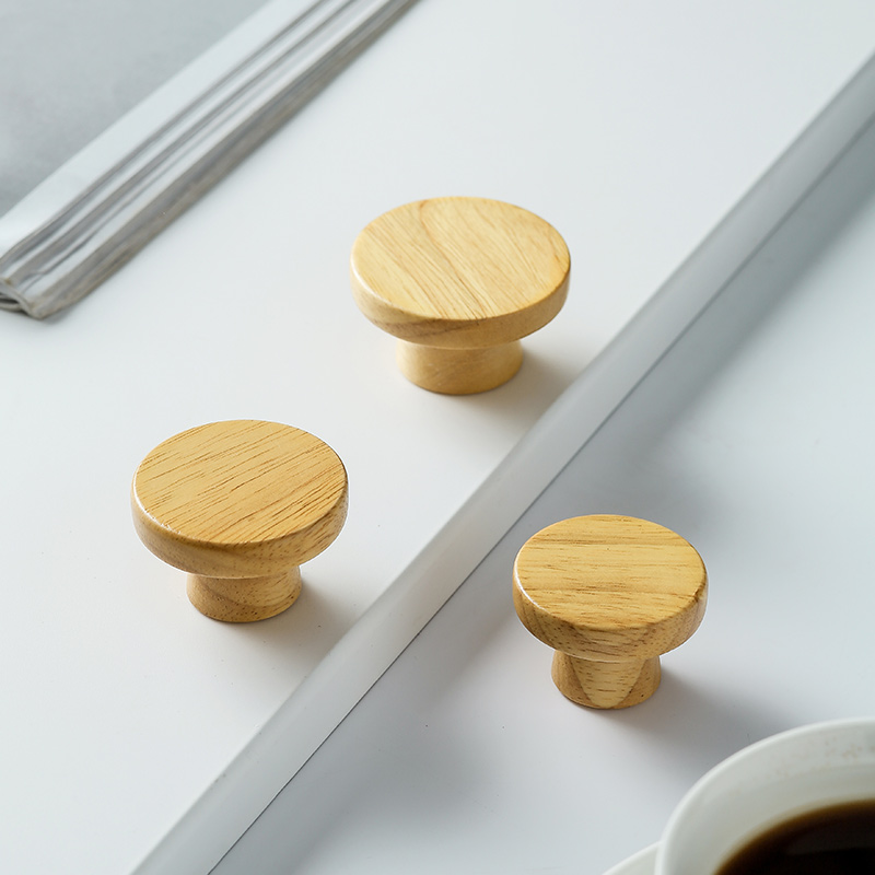 Cabinet door overall cabinet solid wood handle simple drawer wooden door handle Japanese single hole round wardrobe shoe cabinet small handle