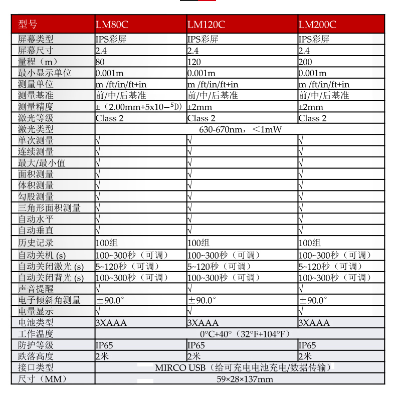 LM80C (indoor out) 80 m LM120C (out of room) 120 m LM200C (out of room) 200 m