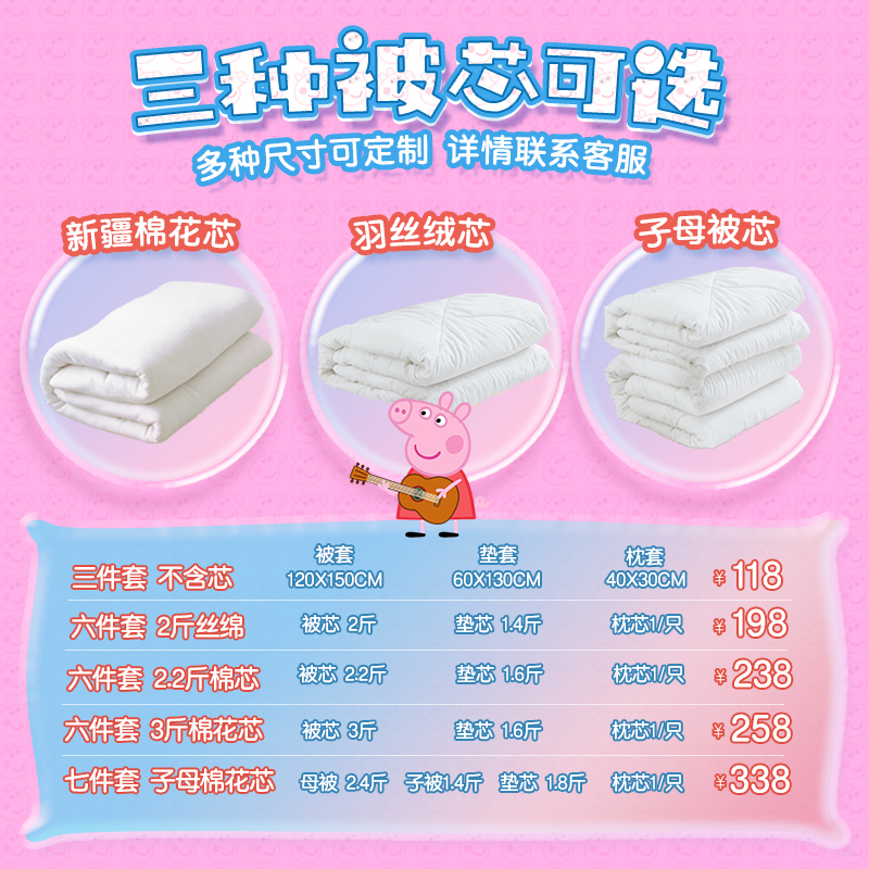 Pig Page Kindergarten Quilt Three-piece Six Children's Pure Cotton Bedding for Nap Baby