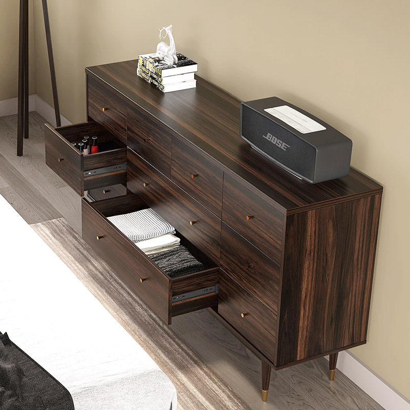 Nordic drawer cabinet light luxury drawer cabinet living room storage cabinet solid wood 7 drawer cabinet walnut color storage cabinet bedroom bed end cabinet