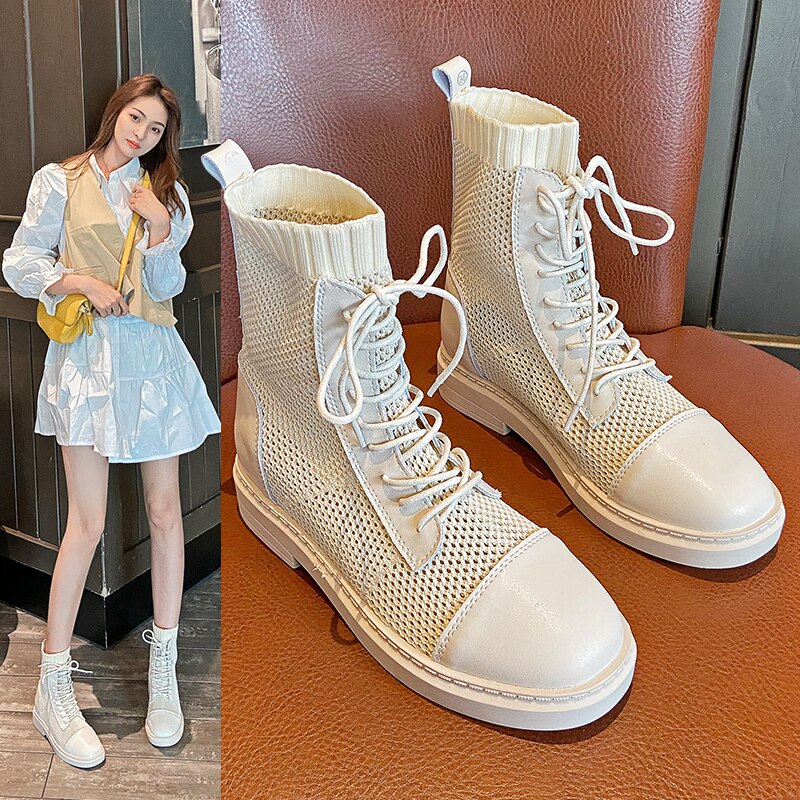 Martin Boots Summer Thin women's white short boots Women's boots Children small Hollowed-out Mesh Boots Breathable women's shoes heightening inside
