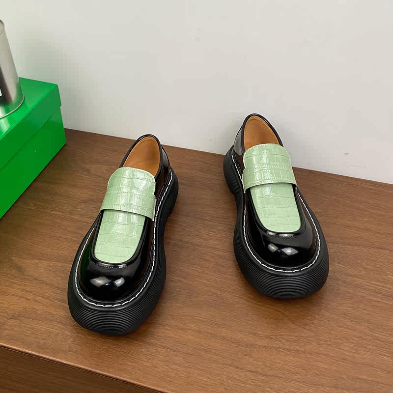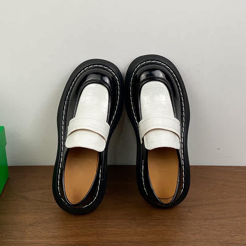 tu bv pine cake thick bottom Lefu shoes female high heel 2022 spring new retro Inn wind big head single shoe female dermis