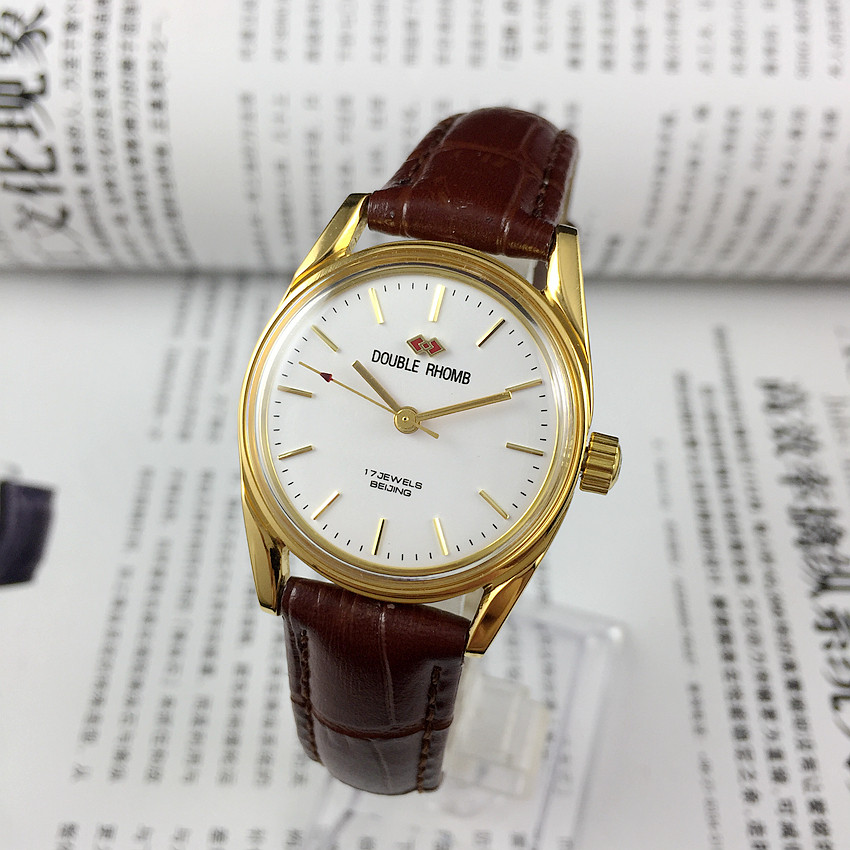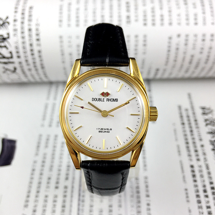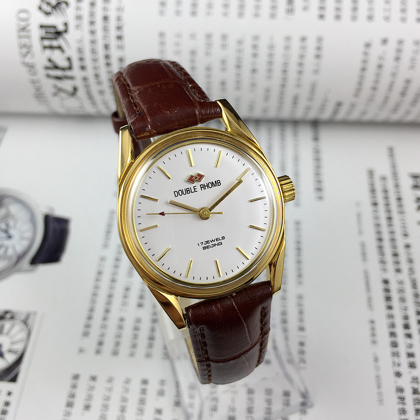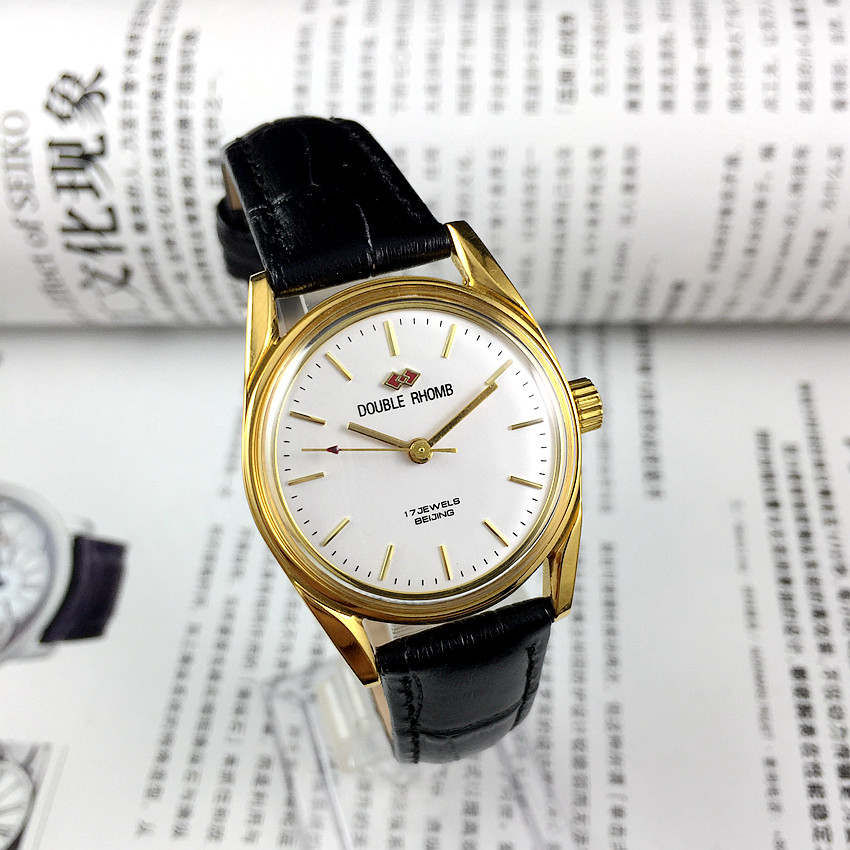 Original Clothing Stocks Beijing Watches Factory Produce Medium Double Rhombus Golden Manual Mechanic Watch Diameter 30 mm