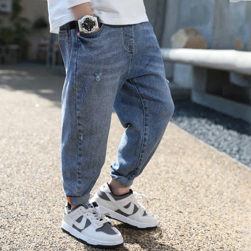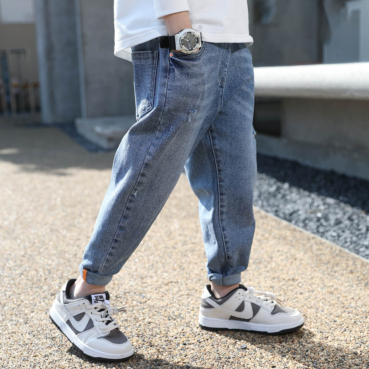 Boys jeans 2022 new children's trousers spring and autumn pants trendy handsome and fashionable spring middle-aged children's cotton