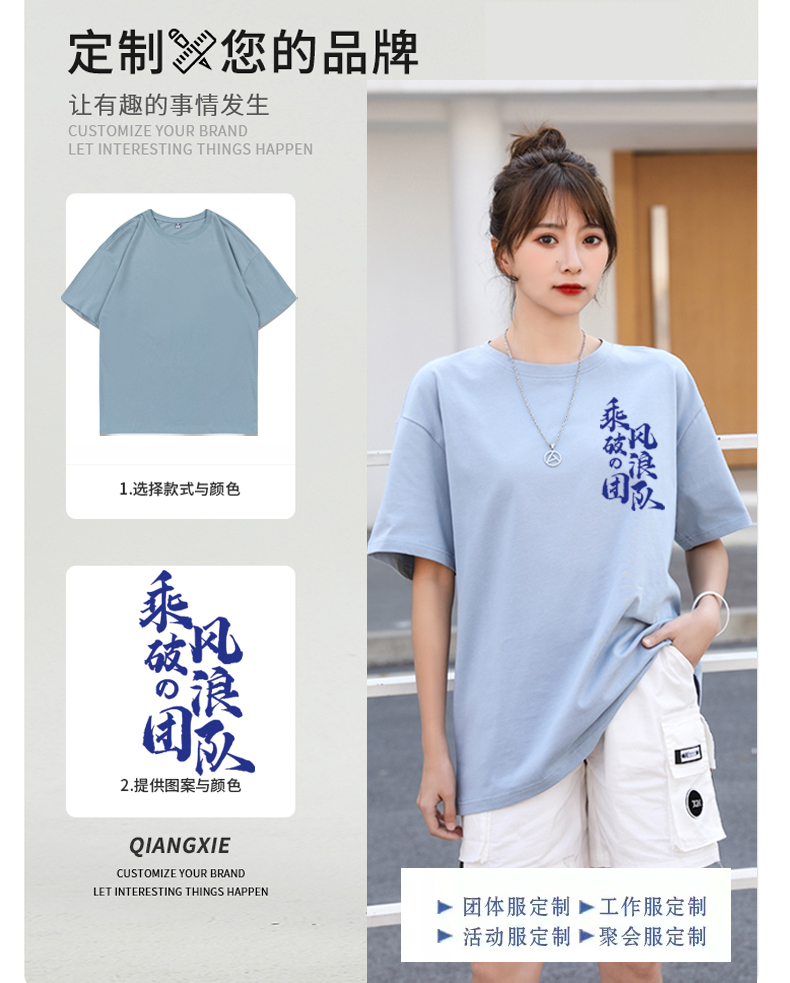 Summer class clothes trend custom 40 cotton short-sleeved T-shirts with dropped shoulders group gatherings round neck cultural shirts with logo printed