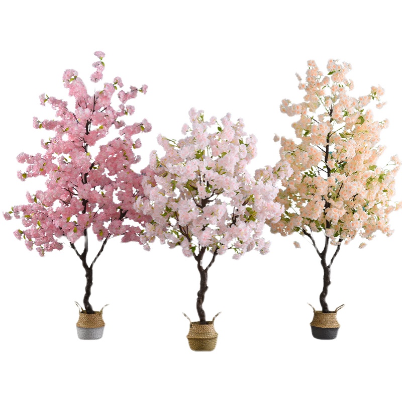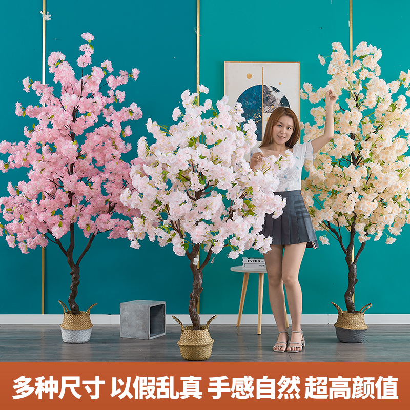 Simulation cherry blossom tree peach blossom wishing tree fake flower landing indoor decoration plant potted home living room swinging piece green planting