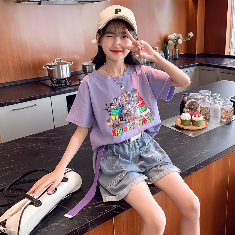 Girl Clothing Suit Children's Nets Red Ocean Faction 2022 New Summer Trendy Sports Big Children Dress Short Sleeve Girls Summer Clothes