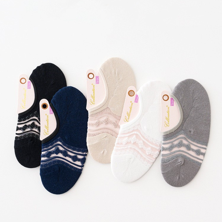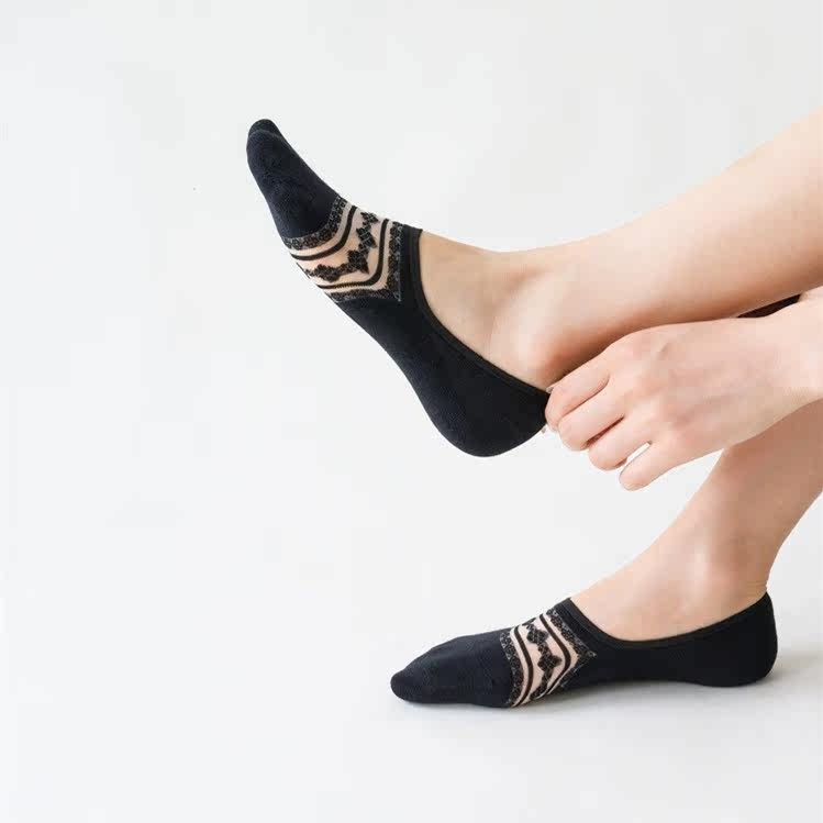 Minimyoka Jacquard Socks Summer Thin style Breathable Anti Slip Silicone Invisible Light Mouth Ship Socks Perspiration