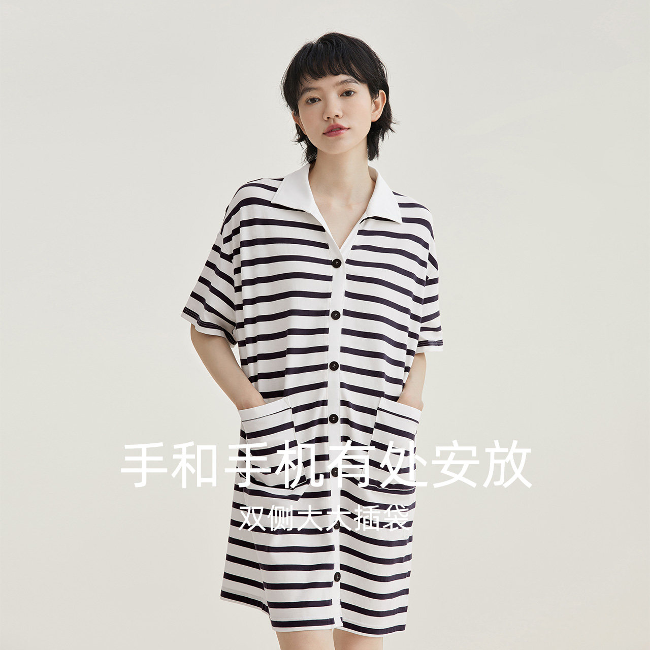 (cool feeling) red bean short-sleeved nightdress women's summer thin pajamas can be worn retro lapel loose and thin home clothes