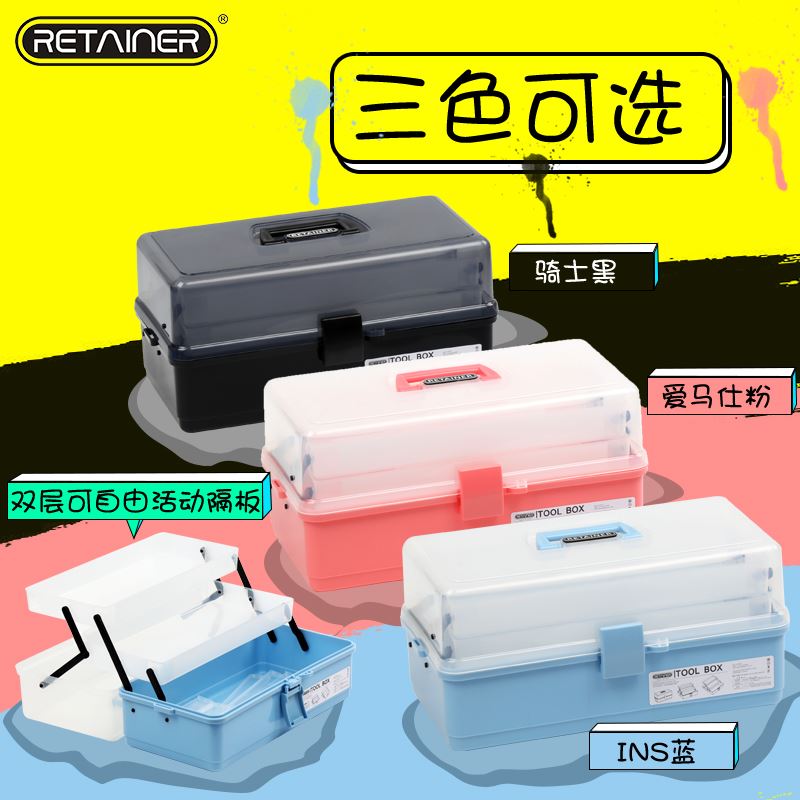 Portable Drawing Fine Art Toolbox Large Triple Triple Folds Plastic Containing Box Student Water Powder Oil Painting Painting Box