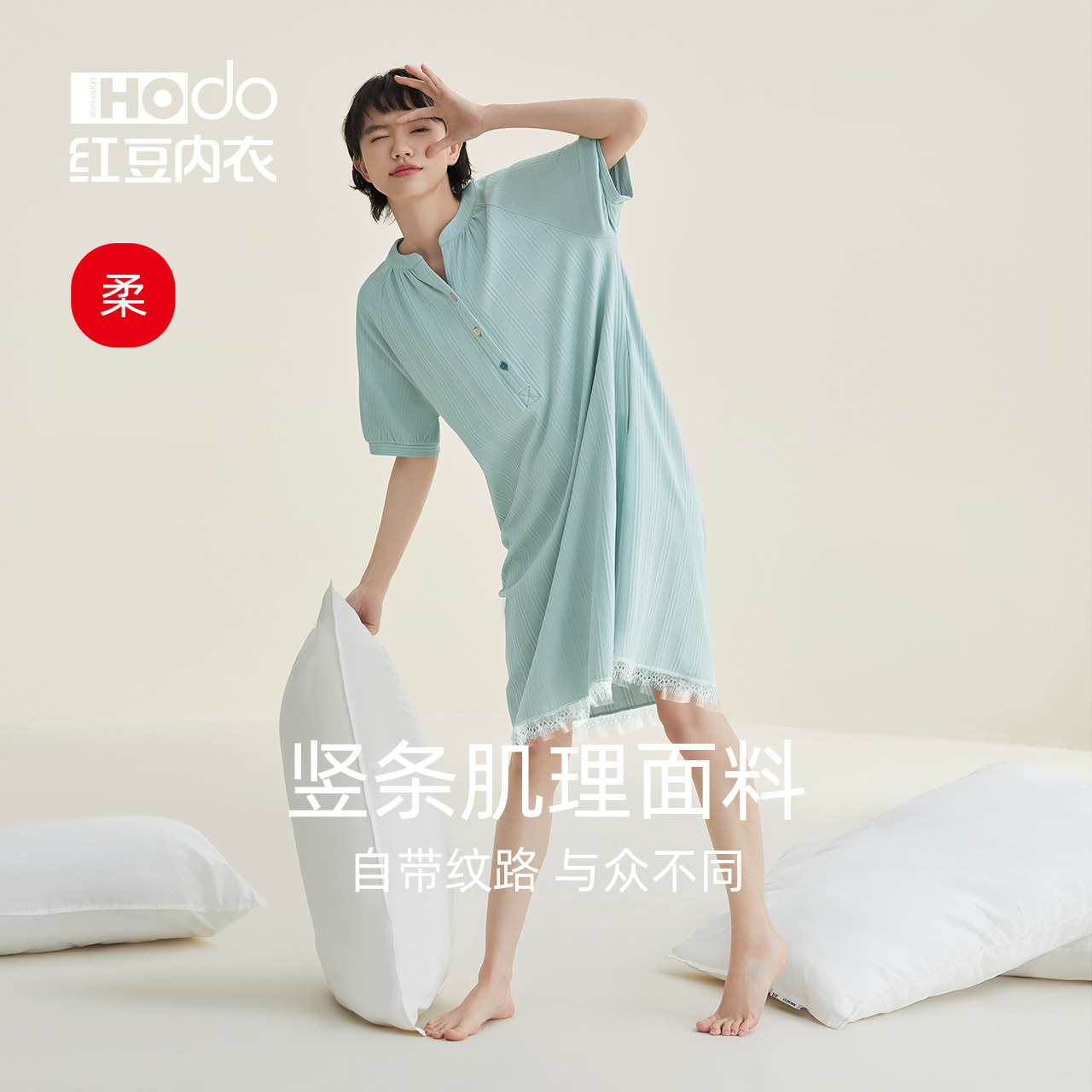 Red Bean Lady Pure Cotton Sleeping Dress Short Sleeve Summer Thin Pyjamas Lace Extractable Dress New Home Dress