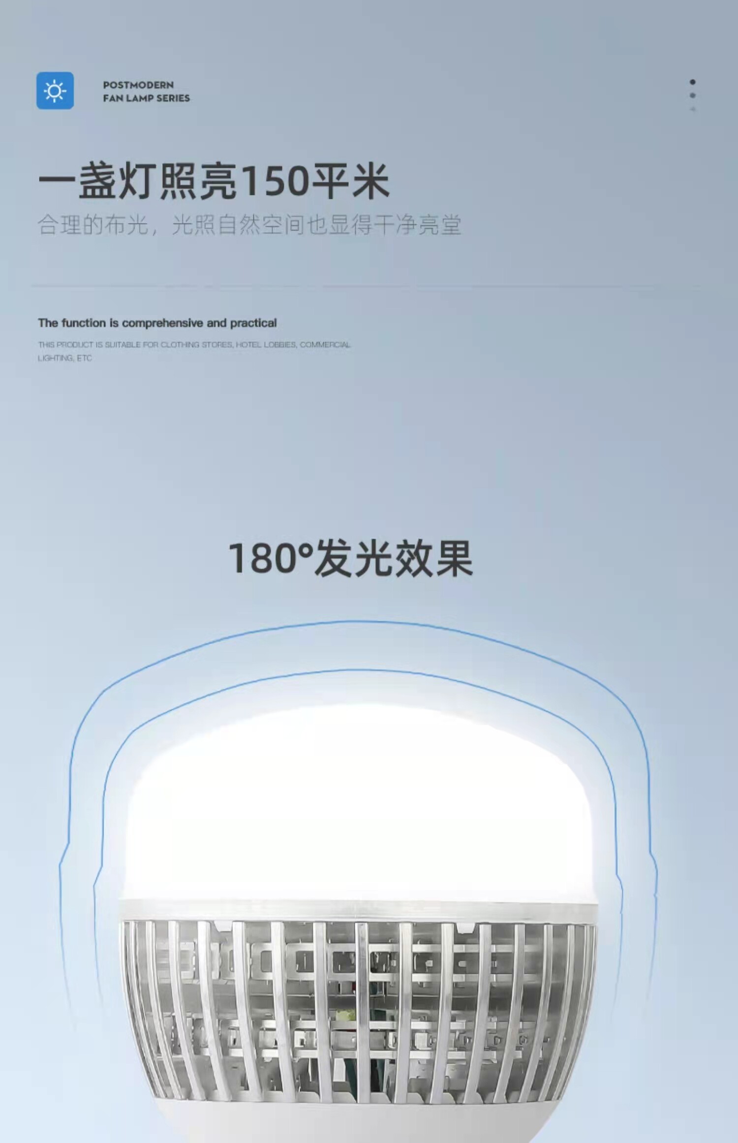 Aluminum 36 watts (reference for lighting 15-28m²) aluminum 50 watts (reference for lighting 25-40m²) aluminum 80 watts (reference for lighting 40-65m²) aluminum 100 watts