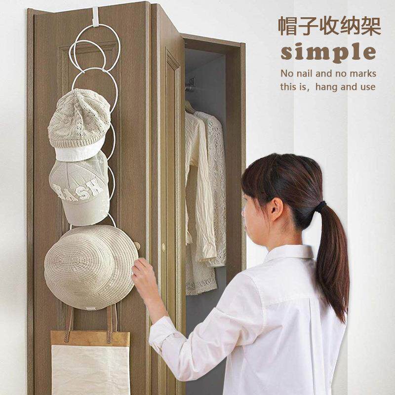 Cross-border hat holding layer iron tidy hook free-hole wardrobe wrapped clothes cap door linked