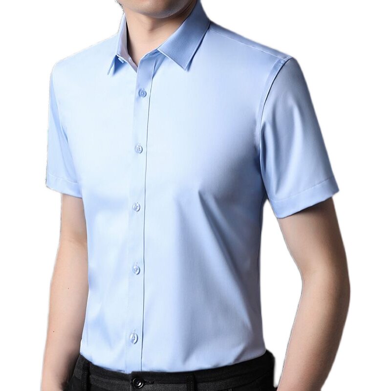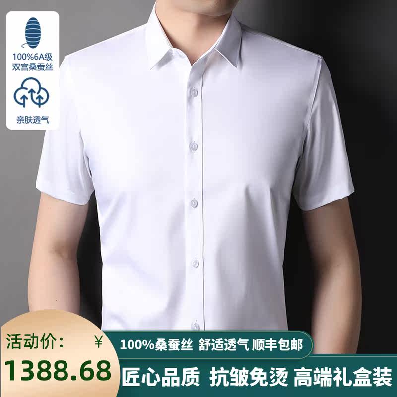 Ordos new mulberry silk short-sleeved shirt men's solid color business free iron high-grade heavyweight silk shirt