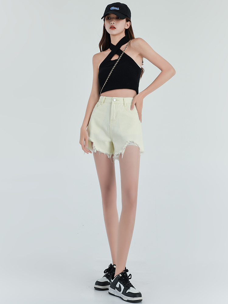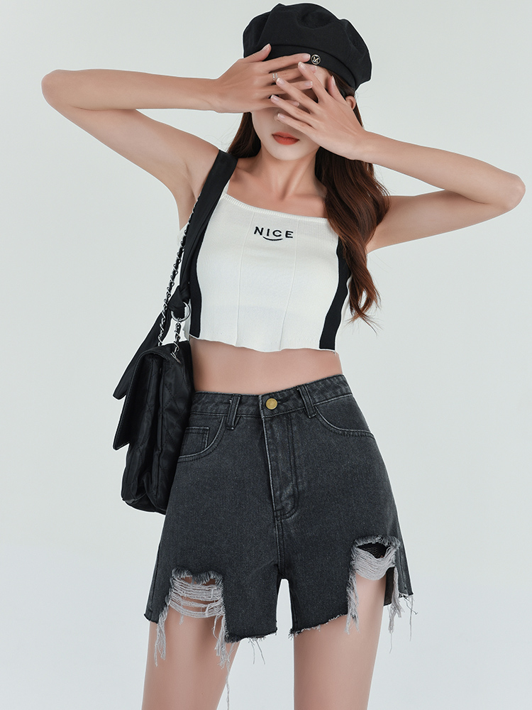 RJVO Ripped Denim Shorts Female 2022 Summer Thin Section Loose Korean Version High Waist A-Line Thin All-match Shorts