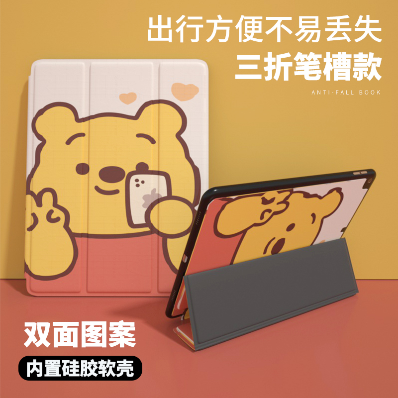 ipadair5 protective case with pen slot 2021 cartoon bear pro11 cute mini6 anti-bending 10 9 book type 4 tablet ninth generation 8 apple 9 three-fold apple six transparent