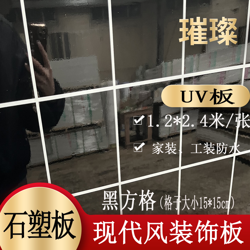 Stone Plastic UV Plate Black Square Lattice Imitation Tile Decorated Board Dining Room Milk Tea Shop Background Wall Waterproof Moisture-proof