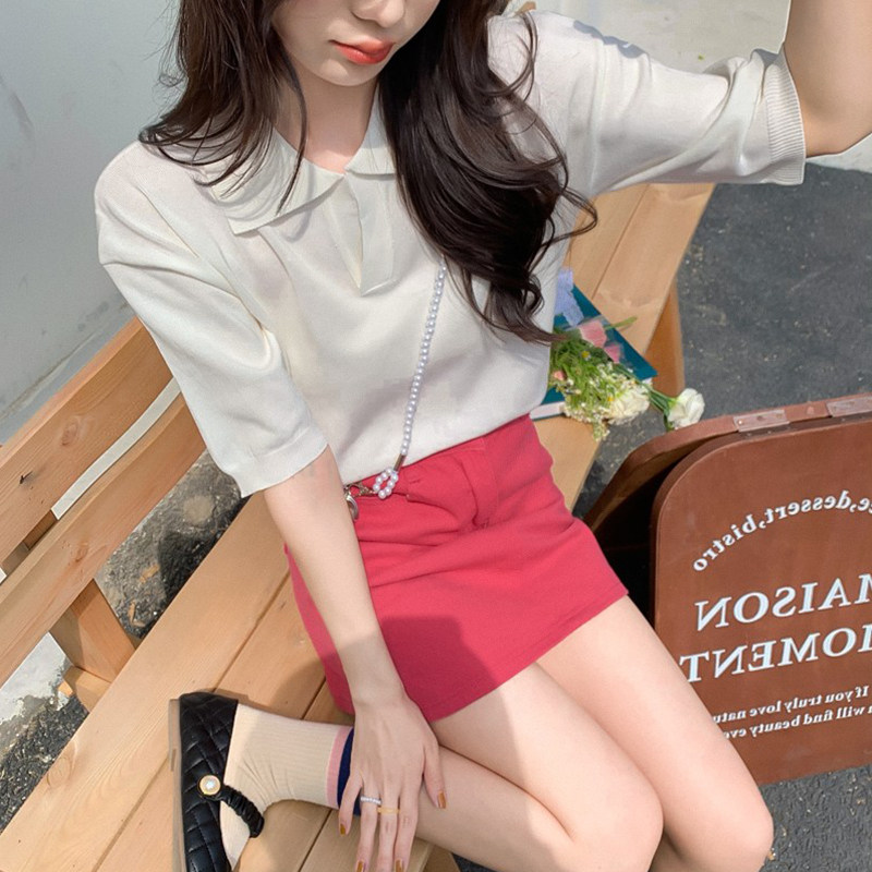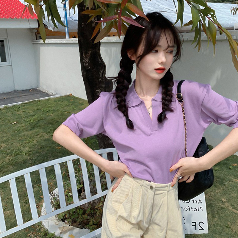 Purple Short Sleeve T-Shirt Summer New Ladded Ice Wire Knife Design Sense Polo Collady Short Line