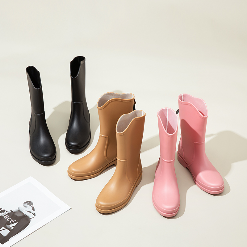 Rain Shoes Women Midtubes Rain Boots Cover Shoes High Cylinder Adults Waterproof Shoes South Korea Ladies Fashion Water Boots Non-slip Wear Resistant Rubber Shoes