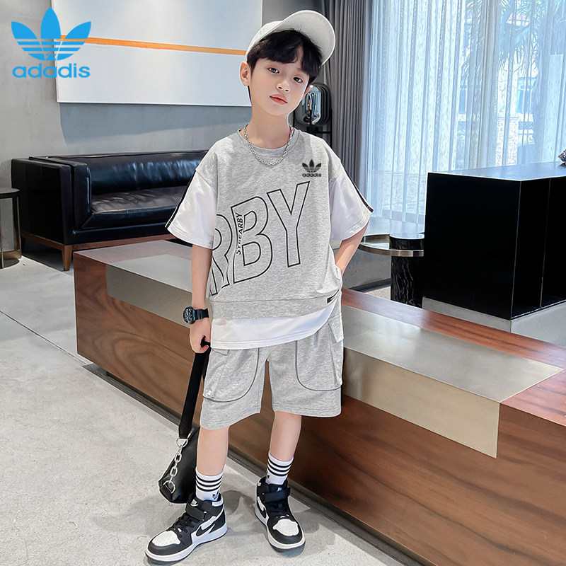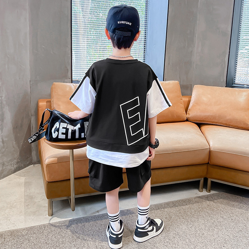 Three Leaf Grass Boy Summer Clothing Suit 2022 New Children Summer T-shirt Short Sleeve Big Boy Handsome Clothes Tide