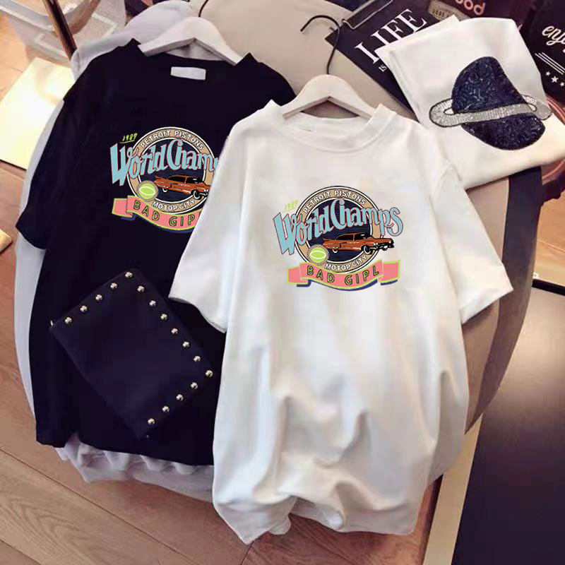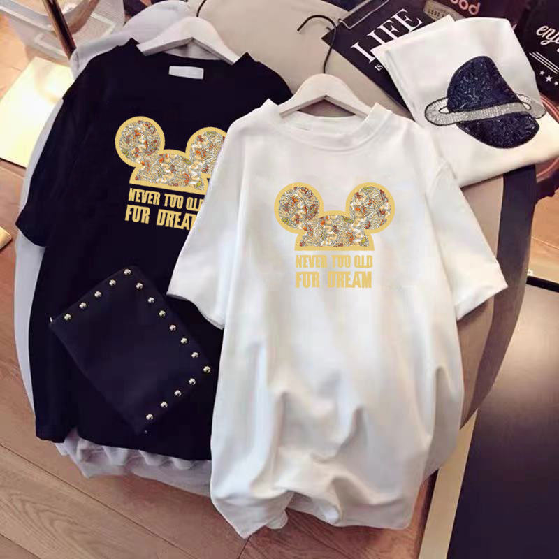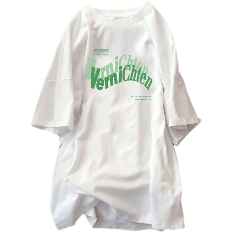 Short Sleeve T-Shirt Maternity Wear Mid-Length Top Loose Korean Version Large Size Cotton T-Shirt Half Sleeve White Versatile Summer Dress