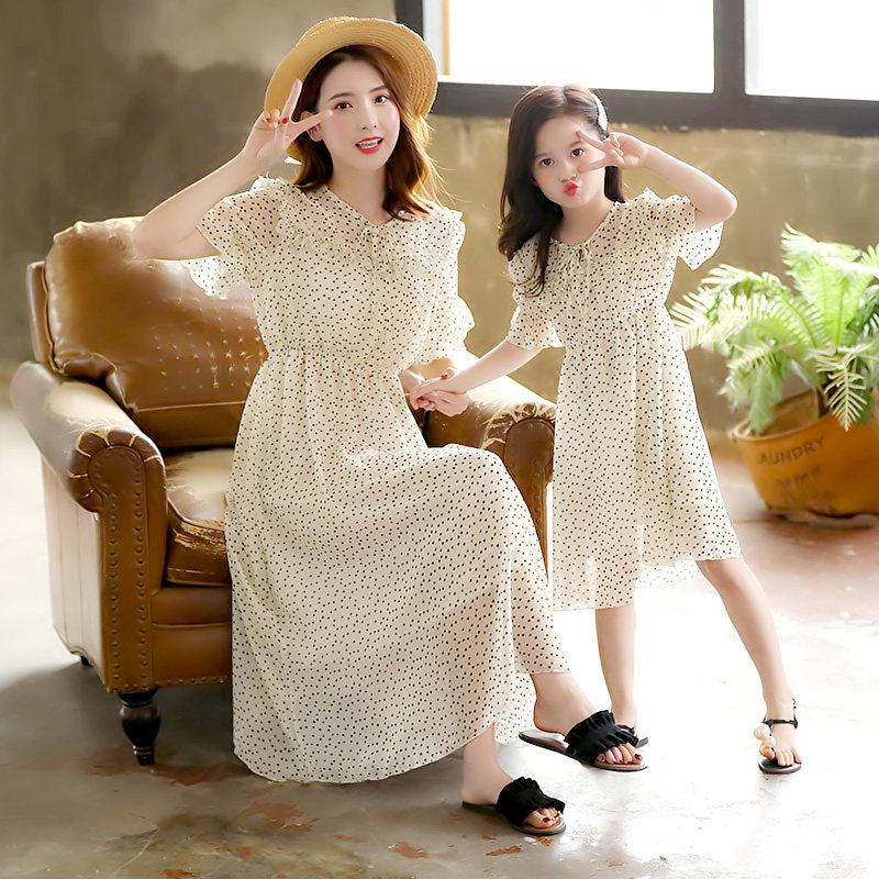 Parenting Mother-daughter Dress Summer Snowspinning Ocean Dress 2022 New Girl Foreign Pie Middle Long Prints Beach Princess Dress