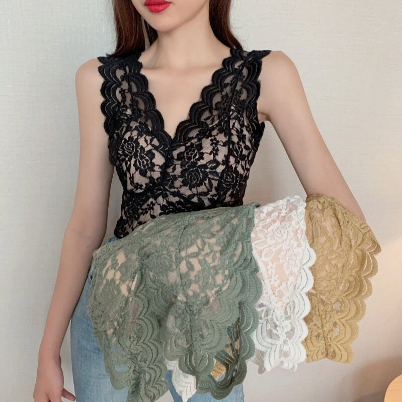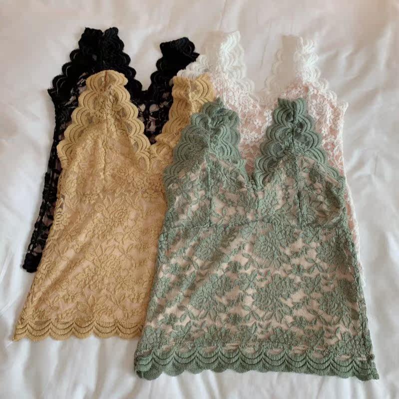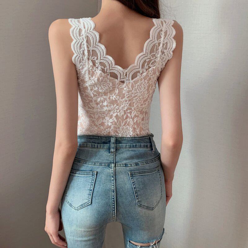 Sexy V Collar Beauty Back Lace Harness Design Sensation Inner Hitch Sleeveless Vest Woman Chest Cushion Bra Integrated With Bottom Blouse