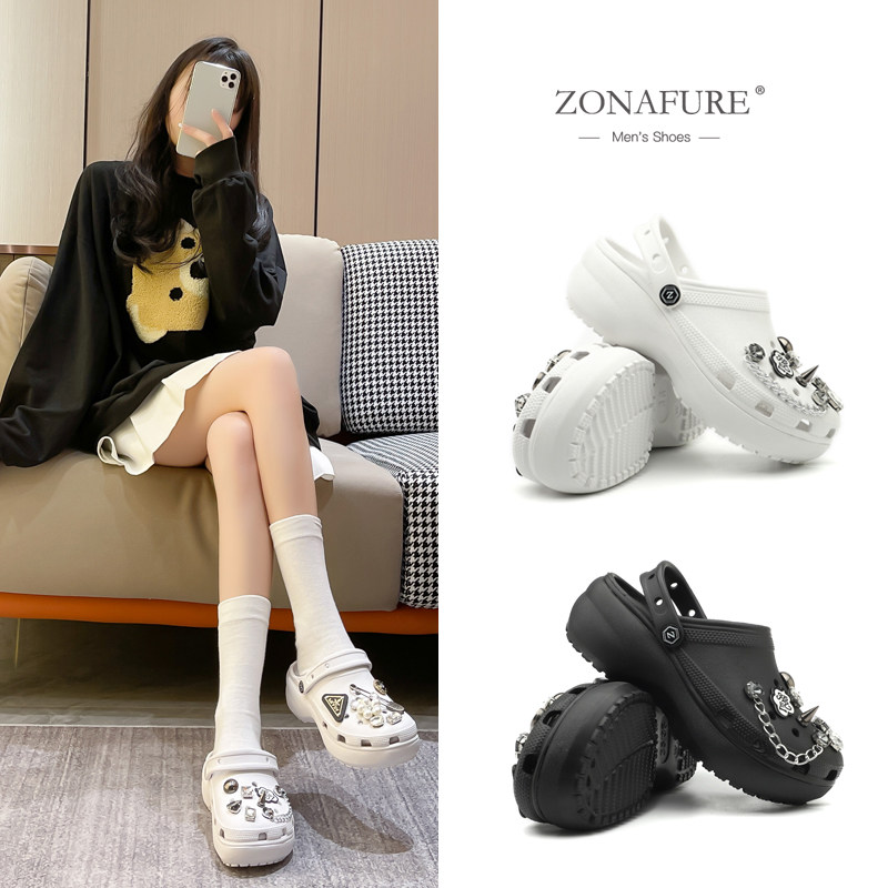 Zonaf cave shoes daughter stepping on shit feeling Diy cute decoration anti-slip beach shoes worn outside summer