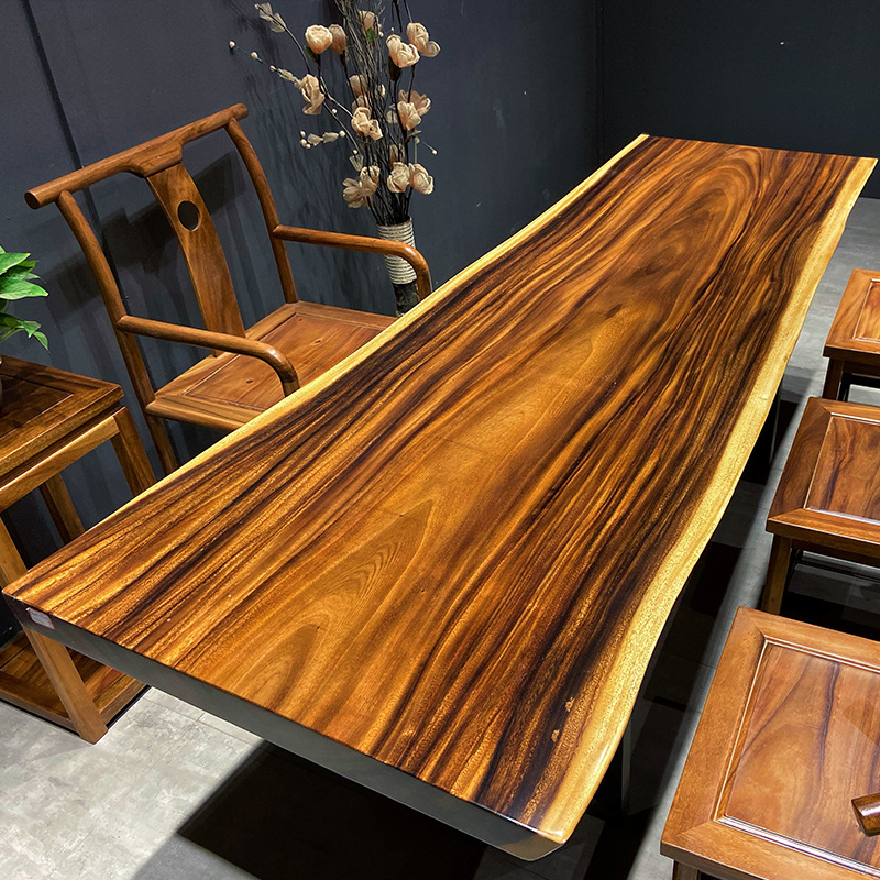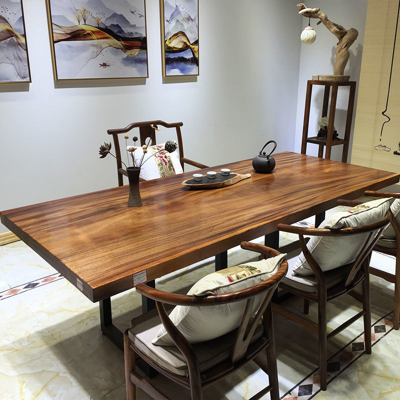 Walnut large board tea table log Bahua whole piece solid wood Okan office tea table Zen ebony simple new Chinese style