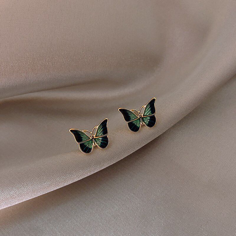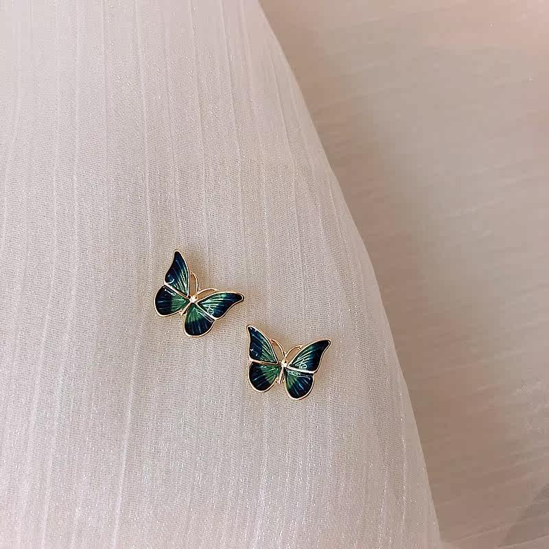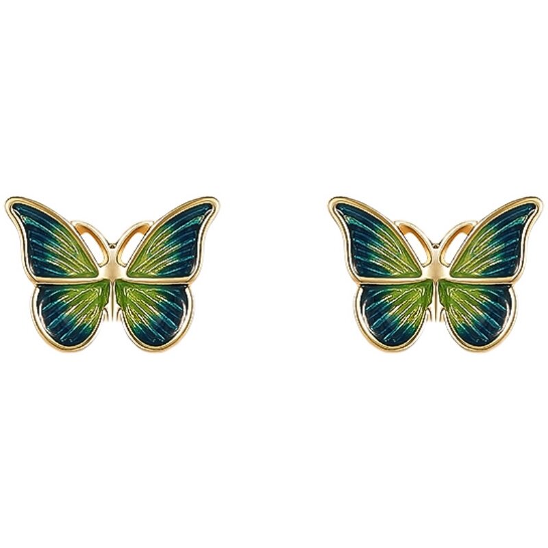 Korean net red oil painting style butterfly earrings women's high-end sense earrings 925 silver needle earrings French temperament ear jewelry