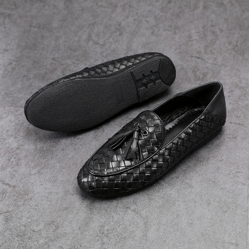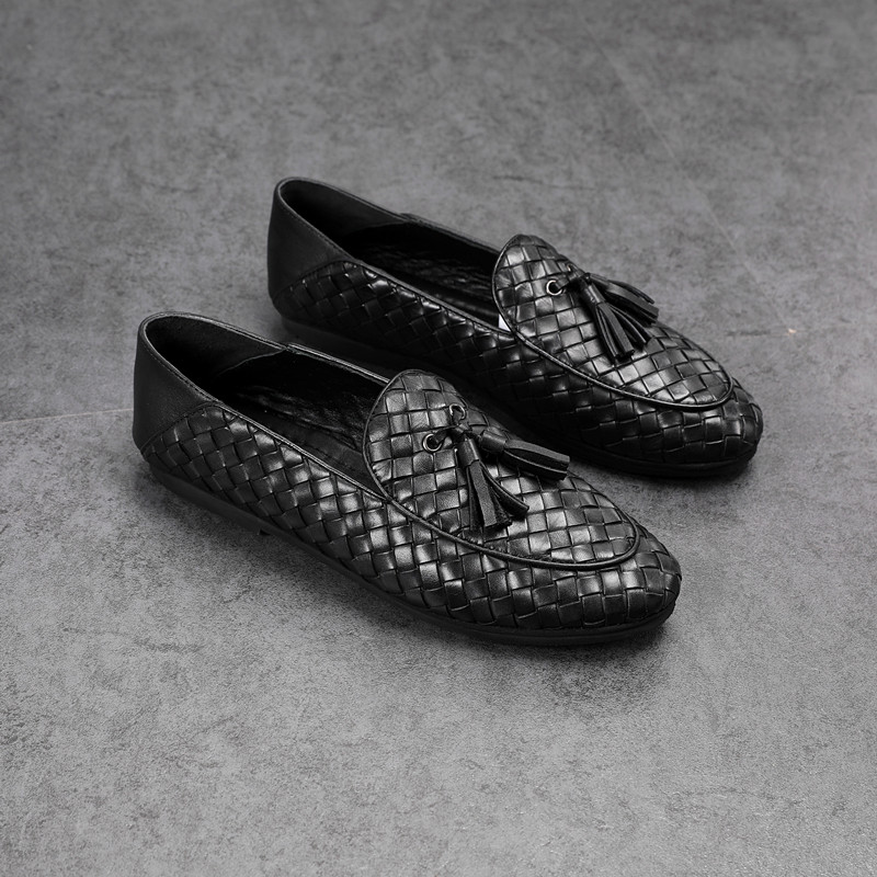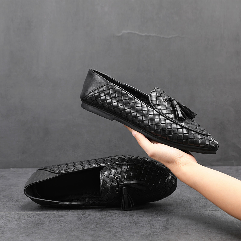 European Station Breathable Genuine Leather Woven Bean Bean Shoes Men's Summer New Set Foot Business Casual Leather Shoes Soi Foot
