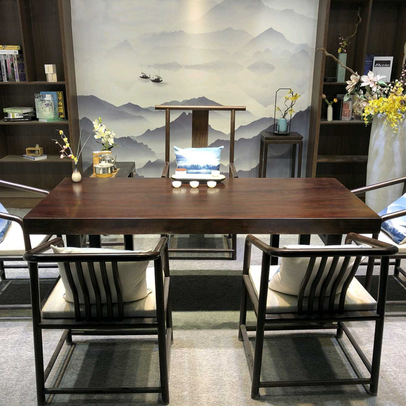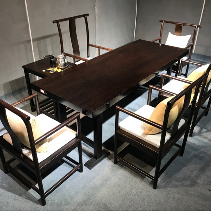Ebony large plate tea table log Bahua whole solid wood Okan office tea table Zen walnut simple new Chinese style