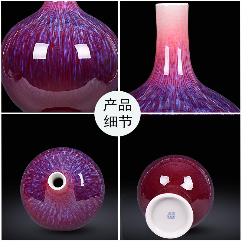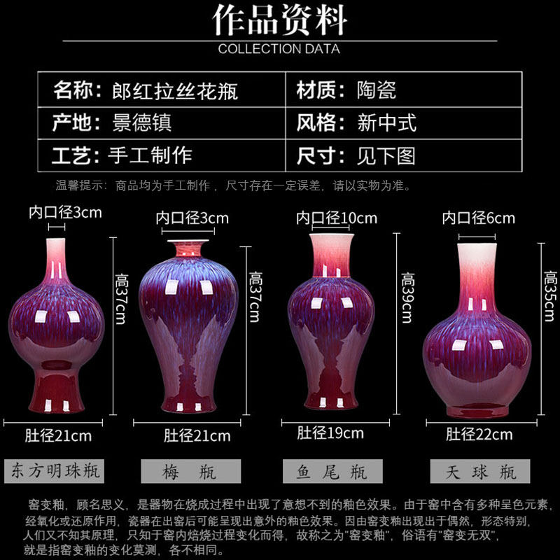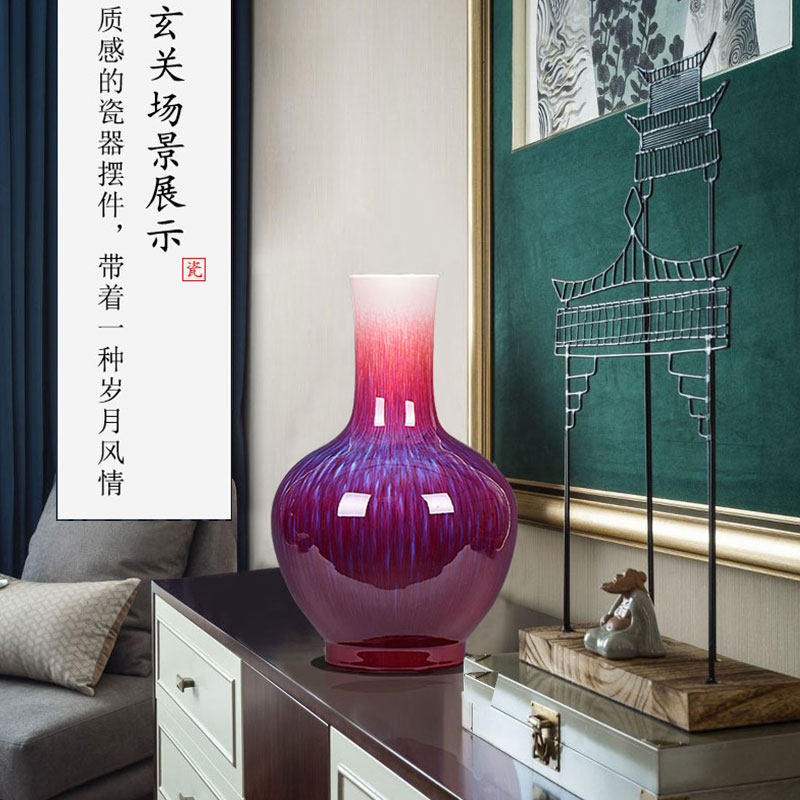 Jingdezhen ceramic kiln becomes Lang red vase decoration living room flower arrangement Chinese style home Bogu rack wine cabinet porch decoration
