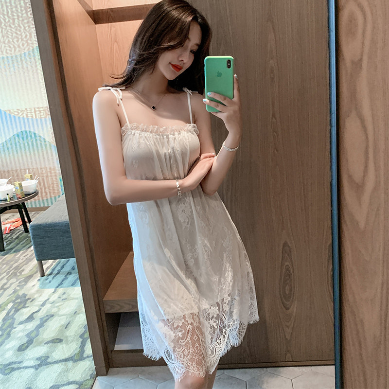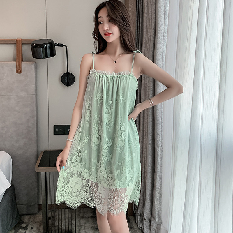 Sexy pajamas woman summer ice silk thin 2023 new sexy silk sling dress lace pure home suit