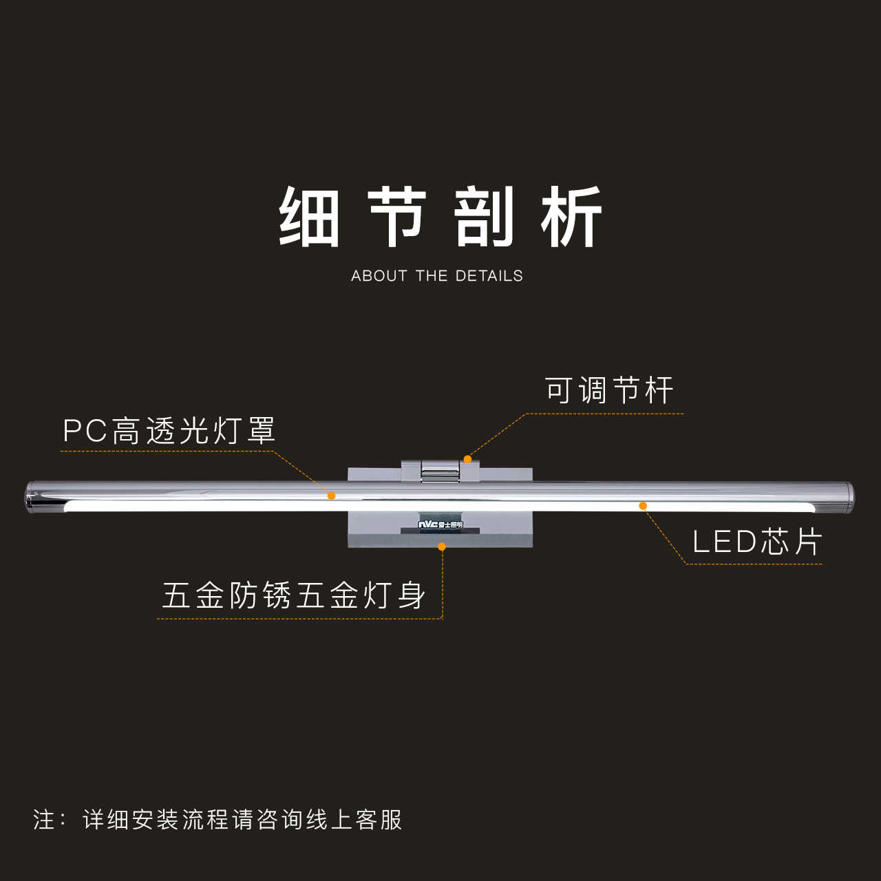 (Perforated-free) Beauty Sands Black section 8 W warm white light Long 445mm (free of punch) Merit sand black section 12 W warm white light length 585mm (silver moon sand black) 8