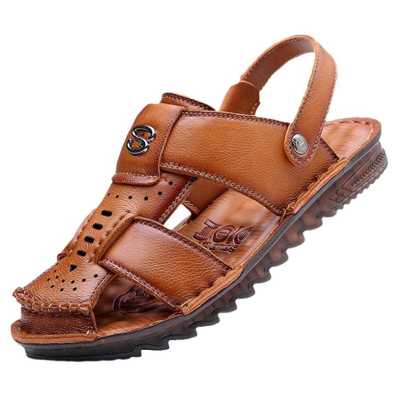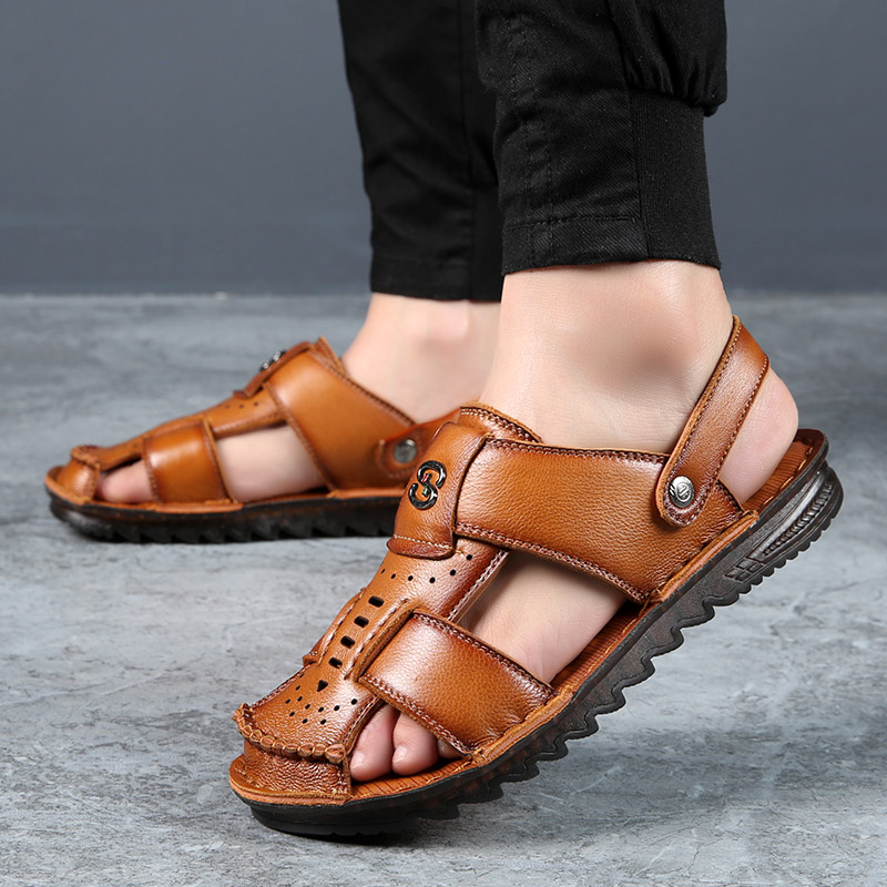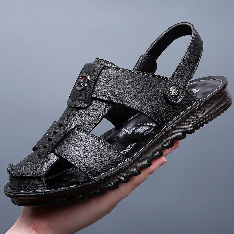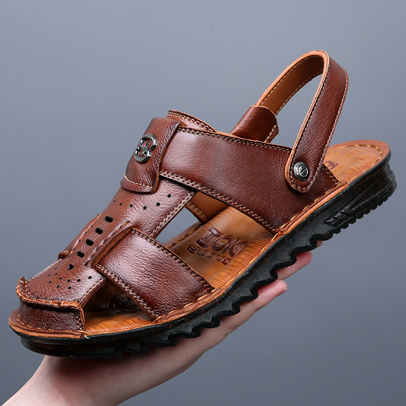 Tendon bottom sandals men's head layer cowhide non-slip wear-resistant beach shoes genuine leather outdoor middle-aged and elderly dad shoes driving