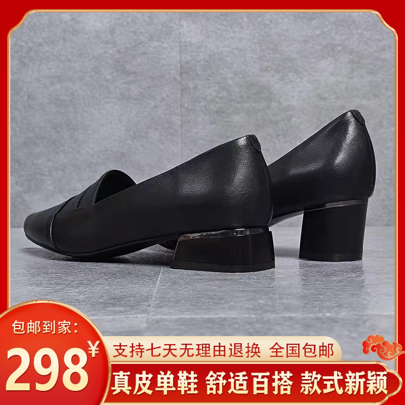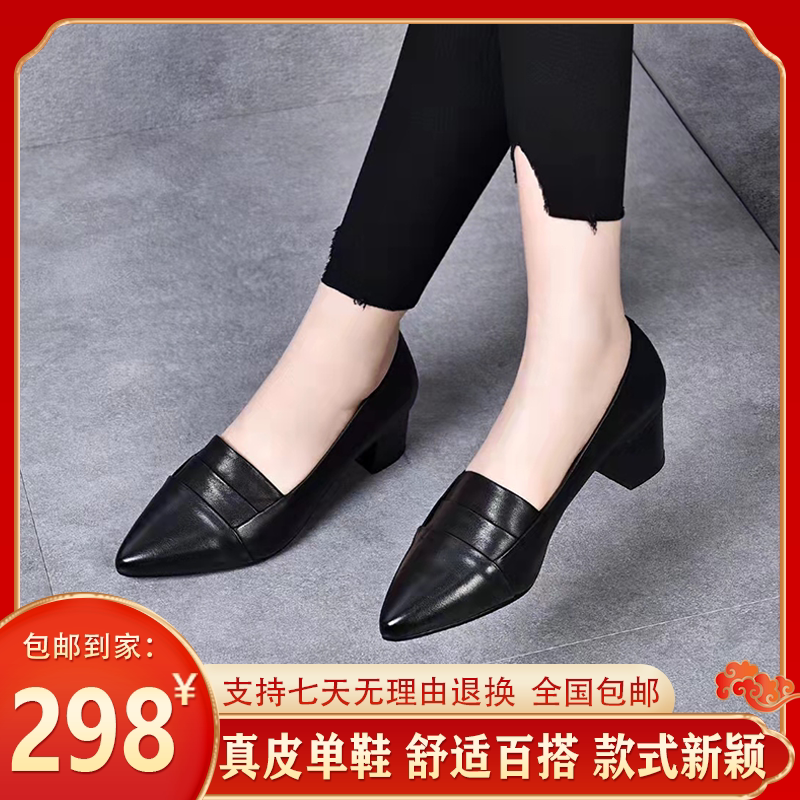 Morennie never-ending shoe store 2022 Spring new coarse heel headlayer Bull Leather Single Shoes Pointy Lefu Small Leather Shoes