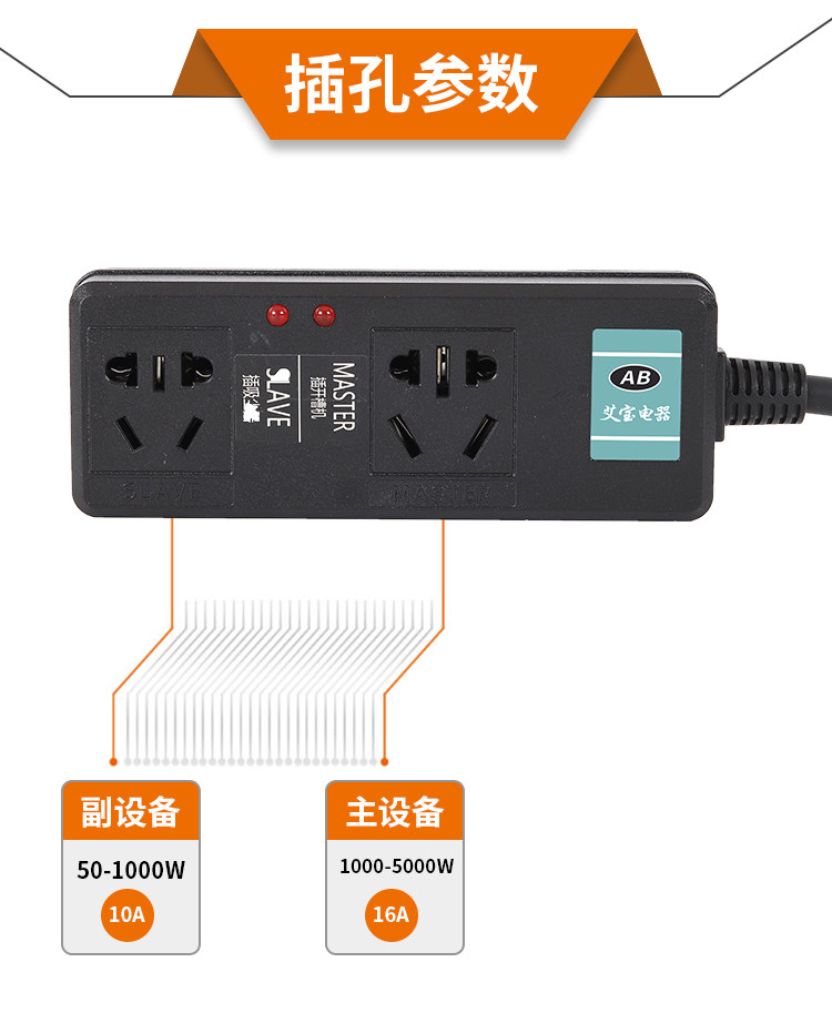 High-power linkage switch main and auxiliary linkage socket slotting machine cloud stone machine water drill water pump vacuum cleaner control row plug