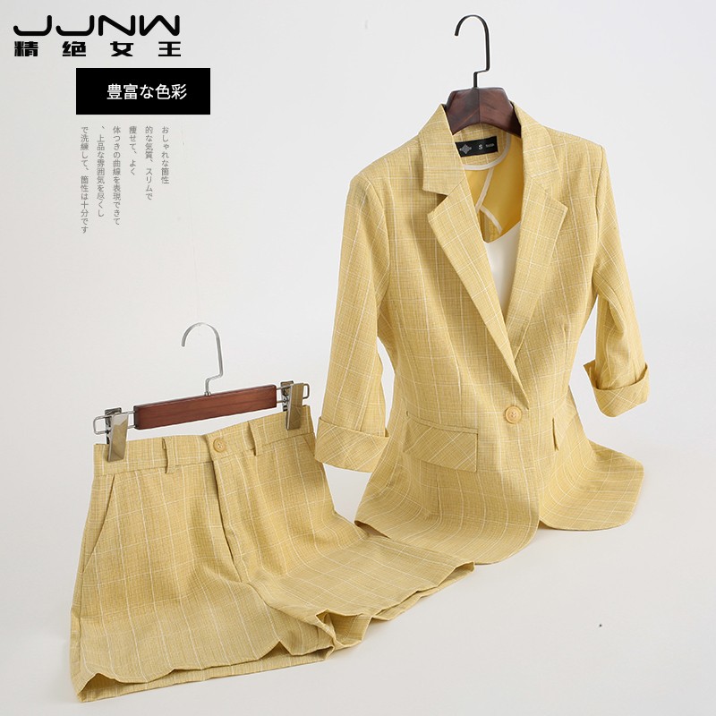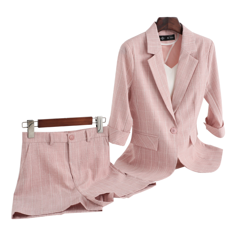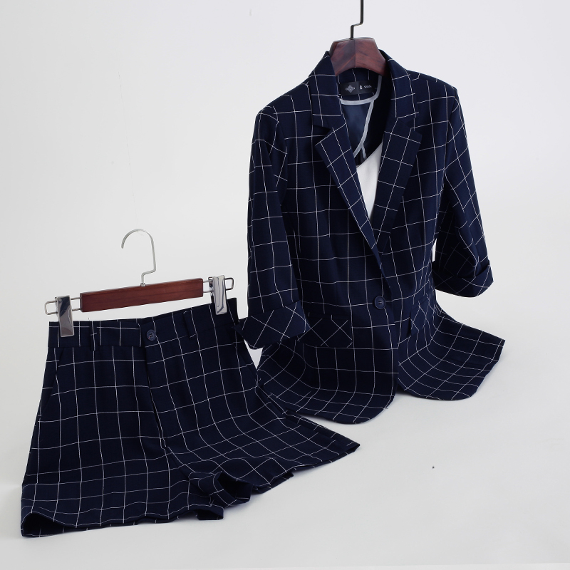 Green plaid suit suit shorts summer women's thin section 2022 new temperament half-sleeved casual small suit jacket