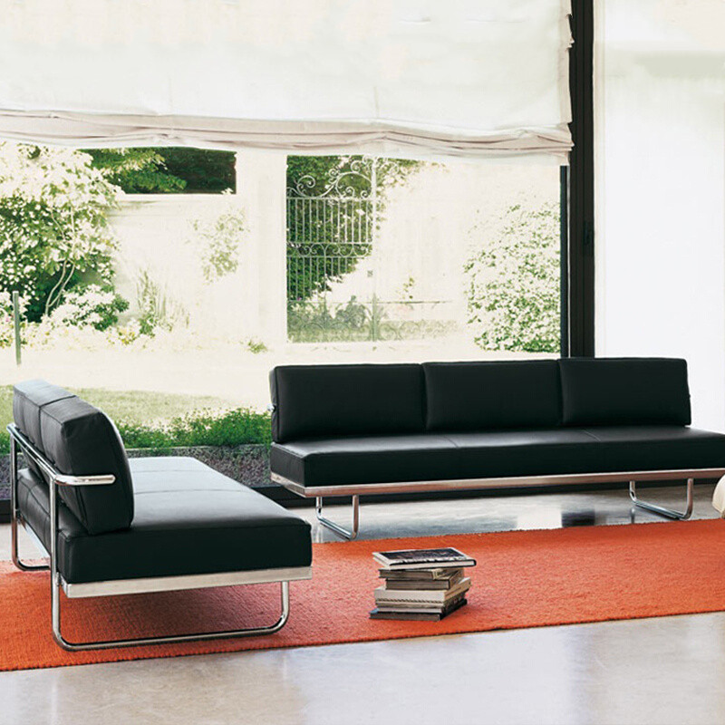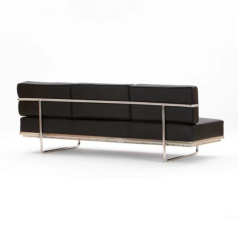 Cobsier LC5 sofa retro straight row genuine leather office sofa stainless steel studio minimalist casual double