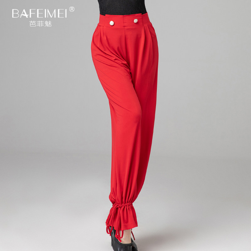 Latin Dance Pants Women 2022 New Morden Dance Waltz National Mark Dance Pants Social Dance High Waist Bunches Pants