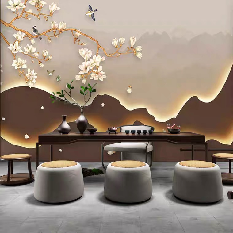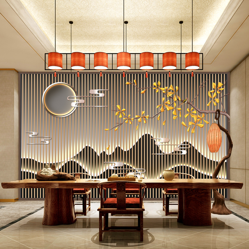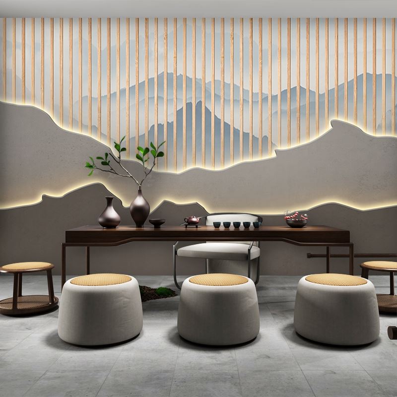 New Chinese Style Furnishing Clubhouse Tea Zhuang Store Nursing Wall Wall Book House Office Superior Light Lavish Bamboo Wood Fiber Integrated Wall Panel