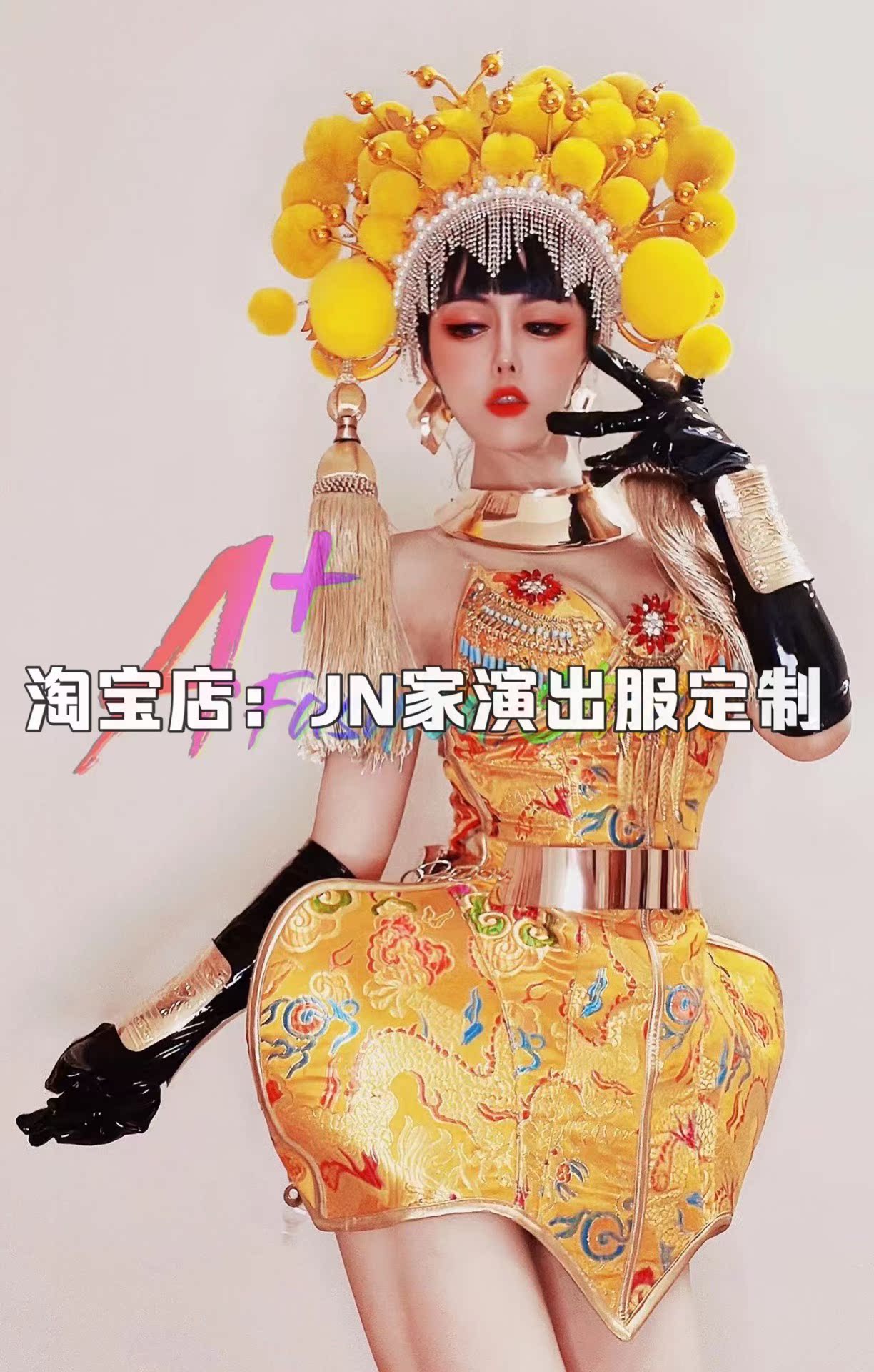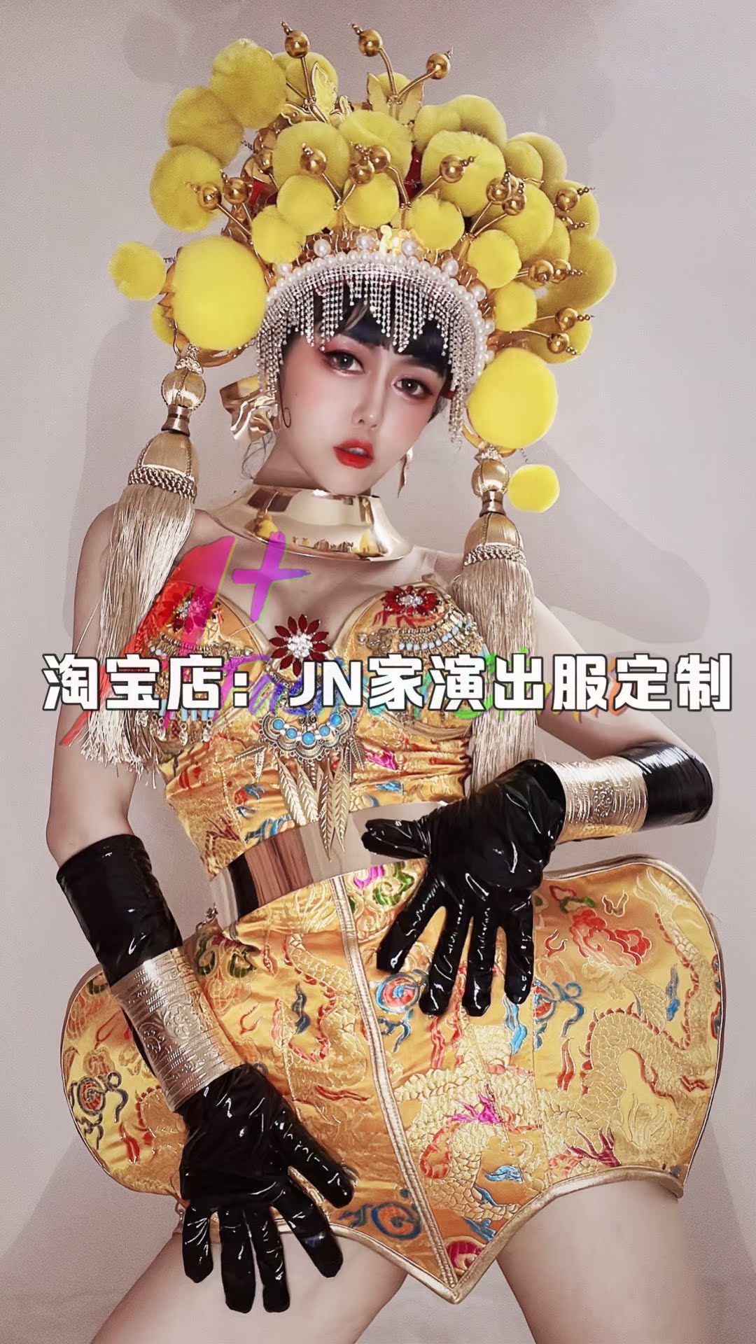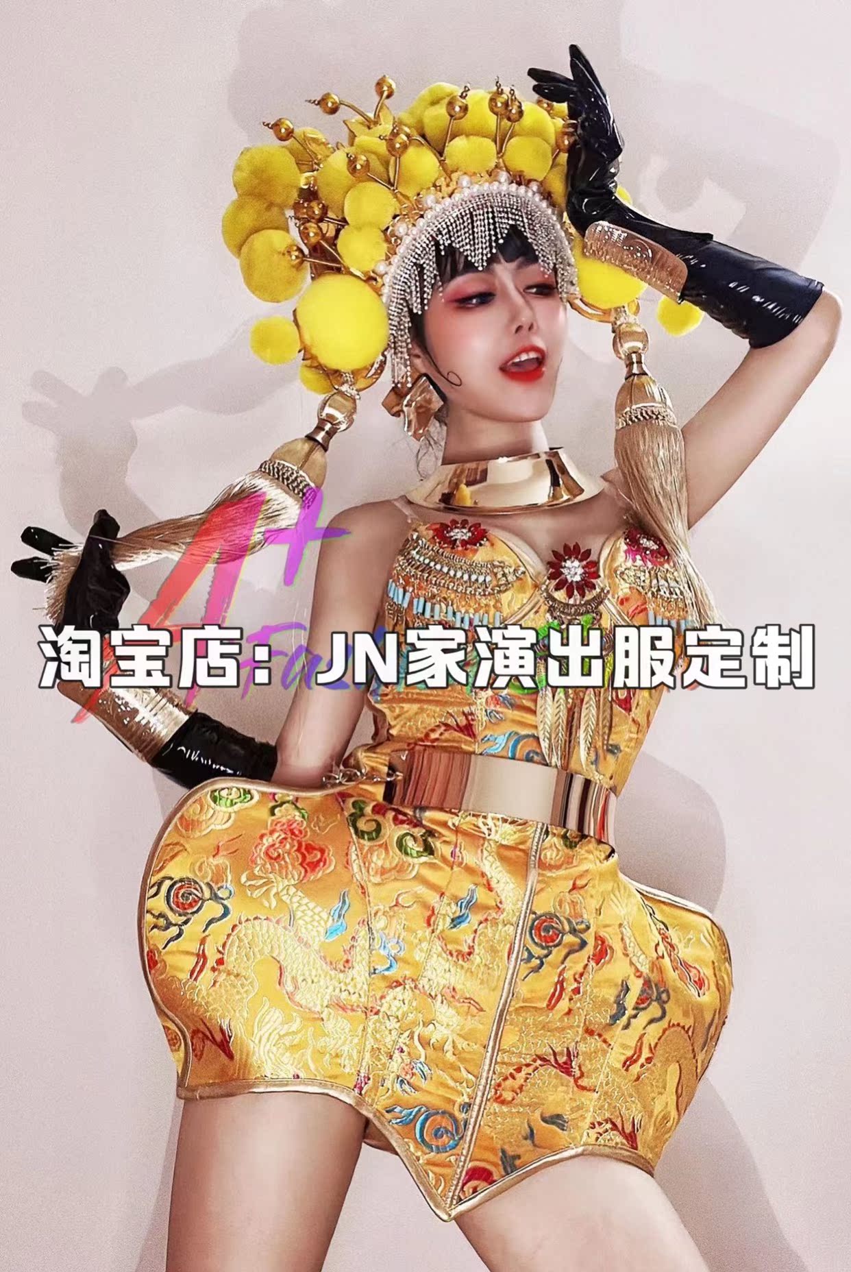 JN China Wind Golden Dragon Robe Improved Peking Opera Head Accessories Suit Nightclub Dance Gogo Grain Subject Show Performance Out