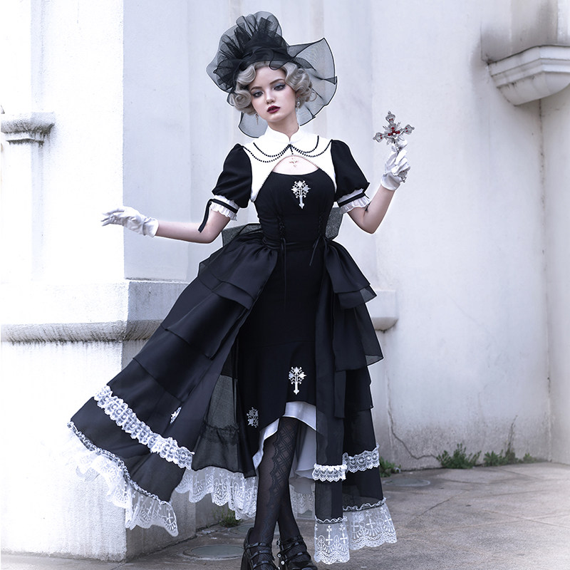 Gothic Nuns Wind Op Hood Dress 2 Pieces Spring Limited Suit Collar Vouchers Stand Down 120