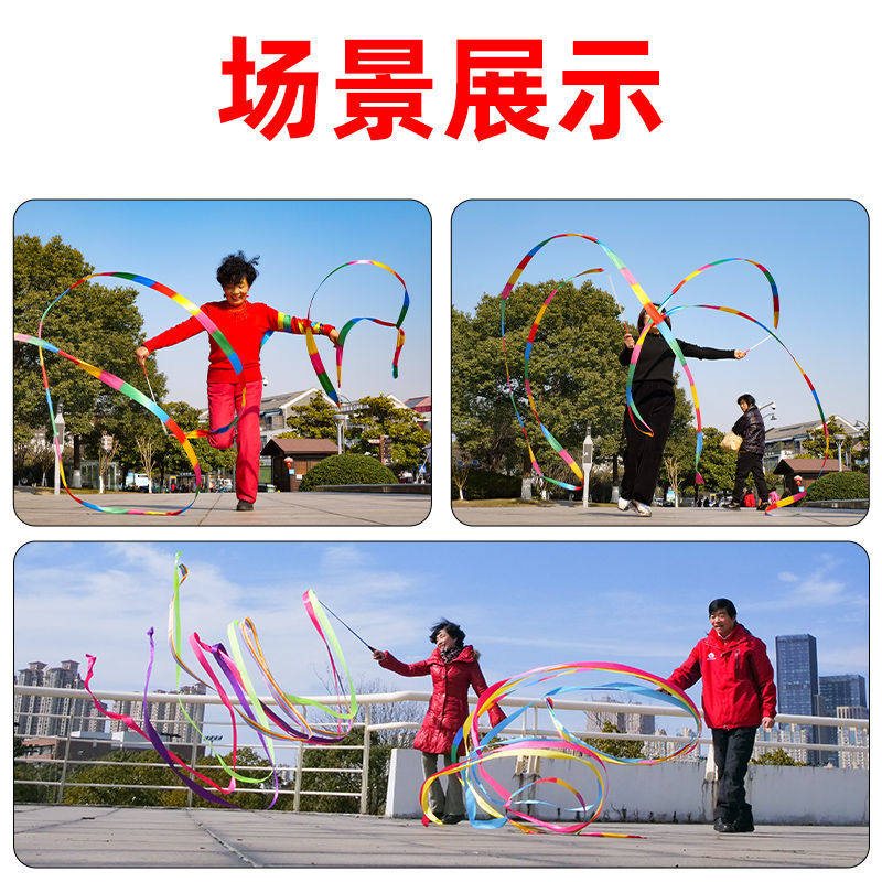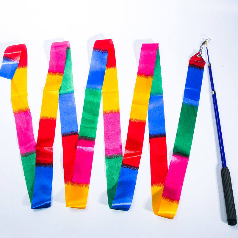 Ribbon one-pole multi-band square dance Fitness Gymnastics Ribbon Dancing Colorful with bar Whip Seven Colored Silk Ribbon with Children Adult