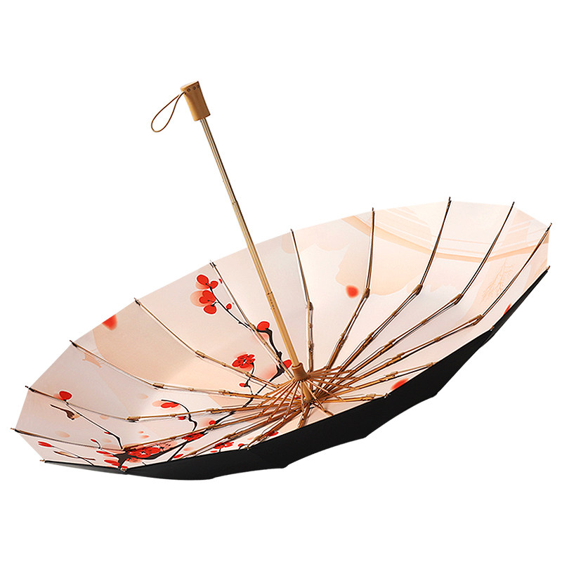 Aohanmei 16 bone black rubber three folders umbrella Yunchun tree 16 bone black rubber three folds umbrella Sunset 16 bone black rubber three folds umbrella Jiangnan 16 bone black rubber three folds umbrella