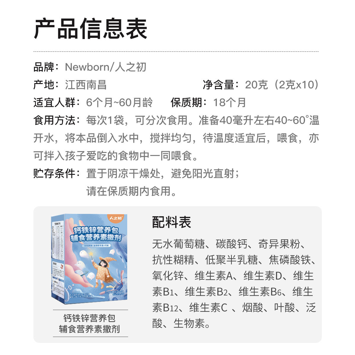 Person at the beginning infant nutrition supplements package Child growth required Calcium Iron Zinc 20g * 2 boxes 1 year old Vitamin AD
