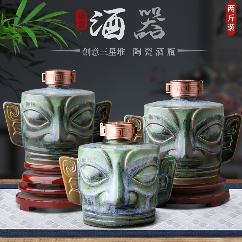 Ceramic wine bottle two-and-a-half pound three-star heap empty wine bottle sealed household wine jug 2 5 jin storage wine tank collection ornaments