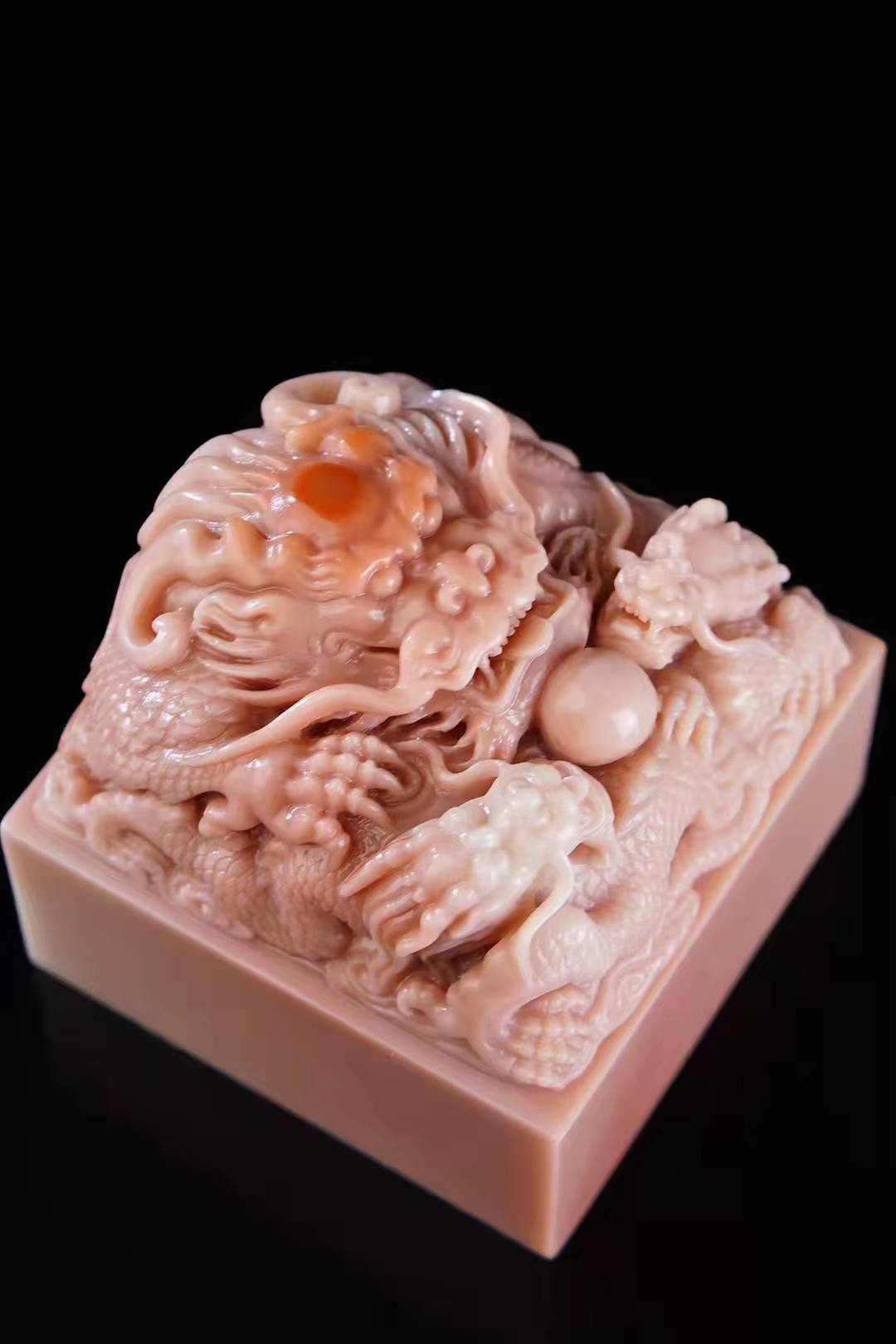 Tian Yellowstone Seal Shoushan Stone Seal Material Stone Pendulum Pieces Ya'an Green Handlebar Pieces Master Works Seal Engraving Name Badge